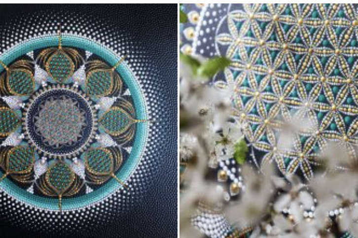 Kodėl kūriniai – mandalas primenančių formų? Anot pašnekovės, taškuoti galima bet kokį vaizdą, tačiau mandalos kūrimas – vienas paprasčiausių būdų pradėti kurti, nes tai negali nepavykti.